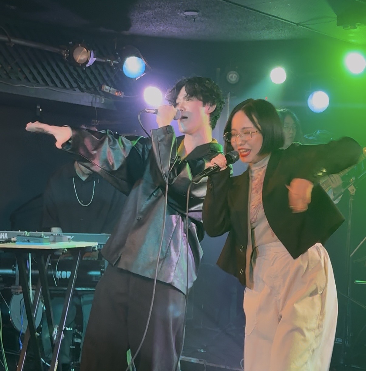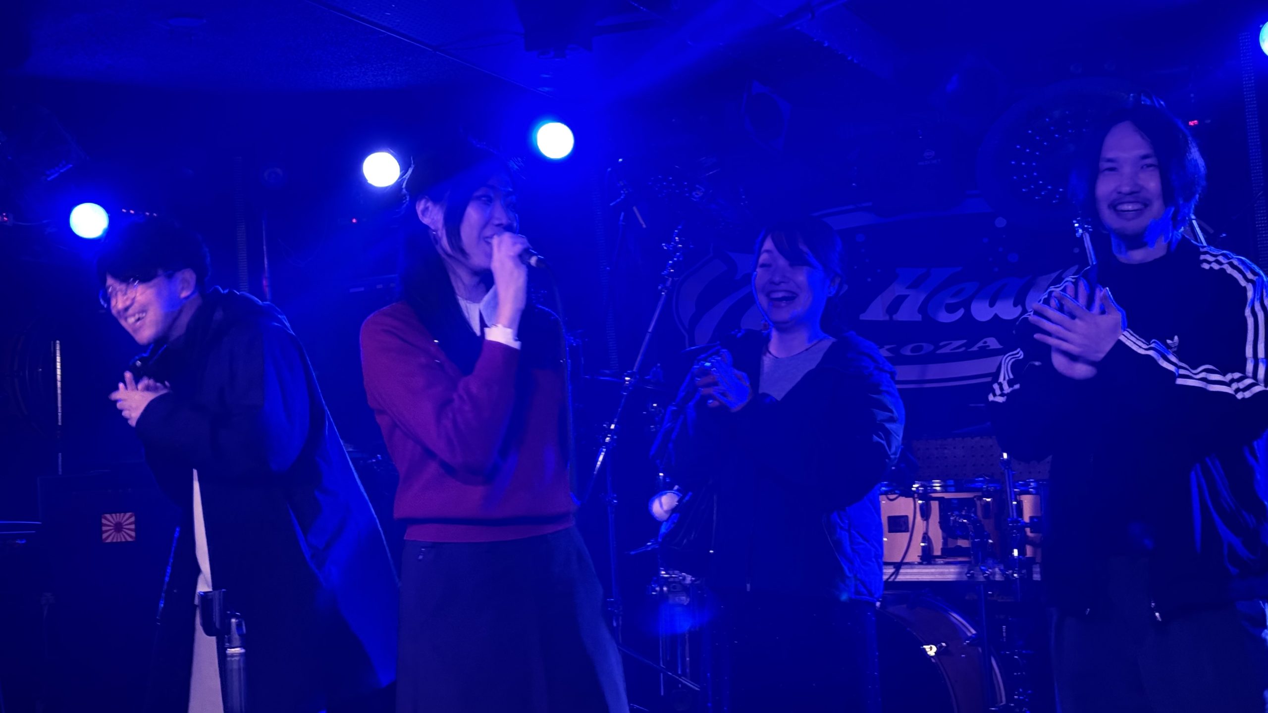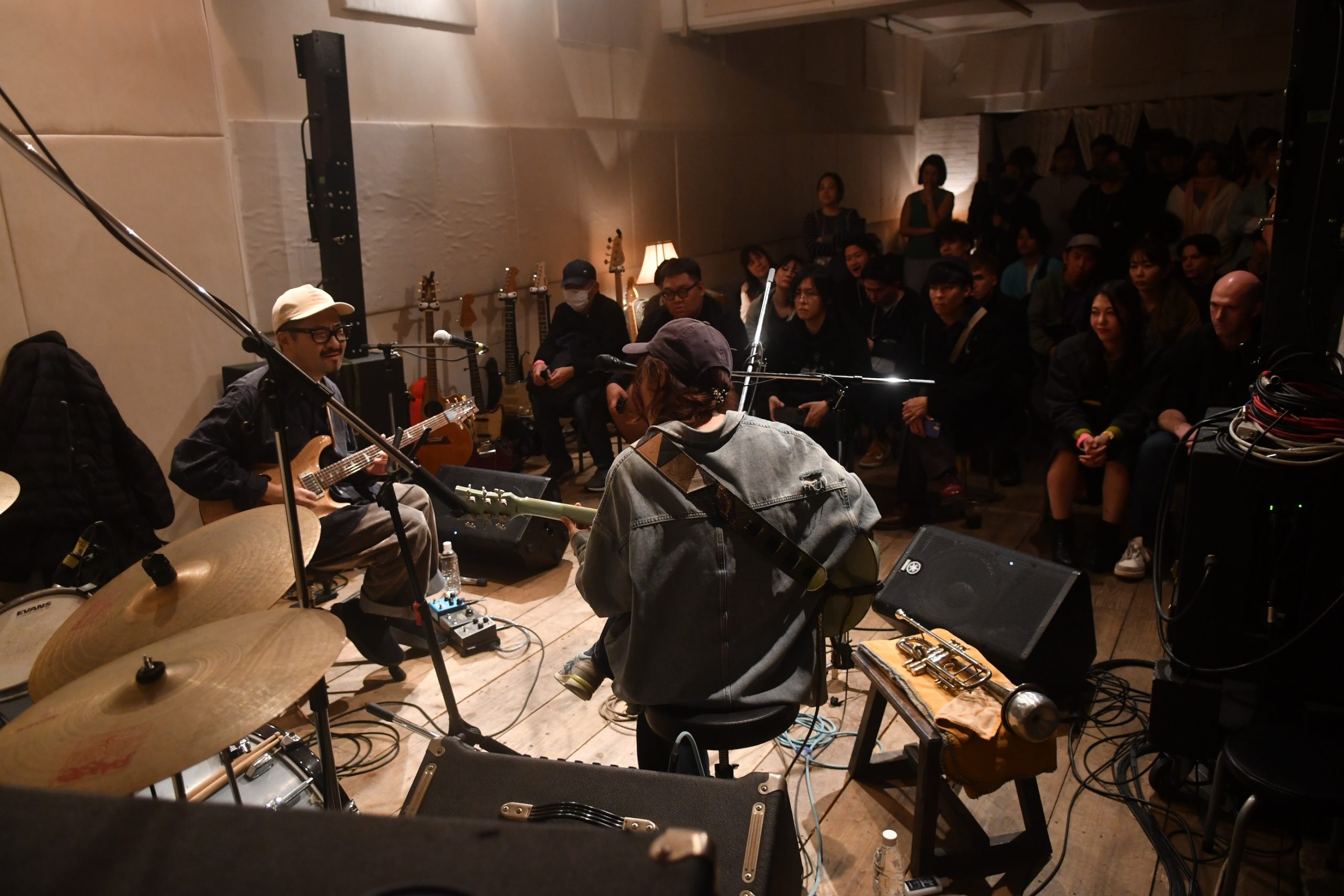 しかし会場へ到着し、地下へ続く扉を開けると、出勤ラッシュ時の満員電車のような人、人、人。ドアが閉まりきらないほどの人の山です。お客さんが入りきらず、フロアの廊下一直線に繋がった控室までぎゅうぎゅうに人が詰め込まれています。真正面からステージを見るどころか、2人の表情さえ見えない真後ろから観るのがやっとでした。